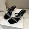 Two Wear Cool Slippers Female Summer Wear New Rhinestone Fairy Wind Crystal Thick Heel Sandals Internet Celebrity Open Toe High Heel Sandals