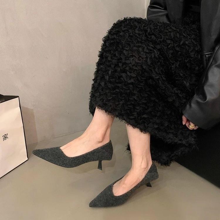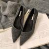 French Black High Heels Pointed Single Shoes Women's Shoes 2025 New Autumn and Winter Outer Wear Velvet Commuter Temperament Shoes