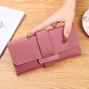 Korean Style Women's Long Tri-Fold Leather Wallet with Coin Pocket and Snap Closure