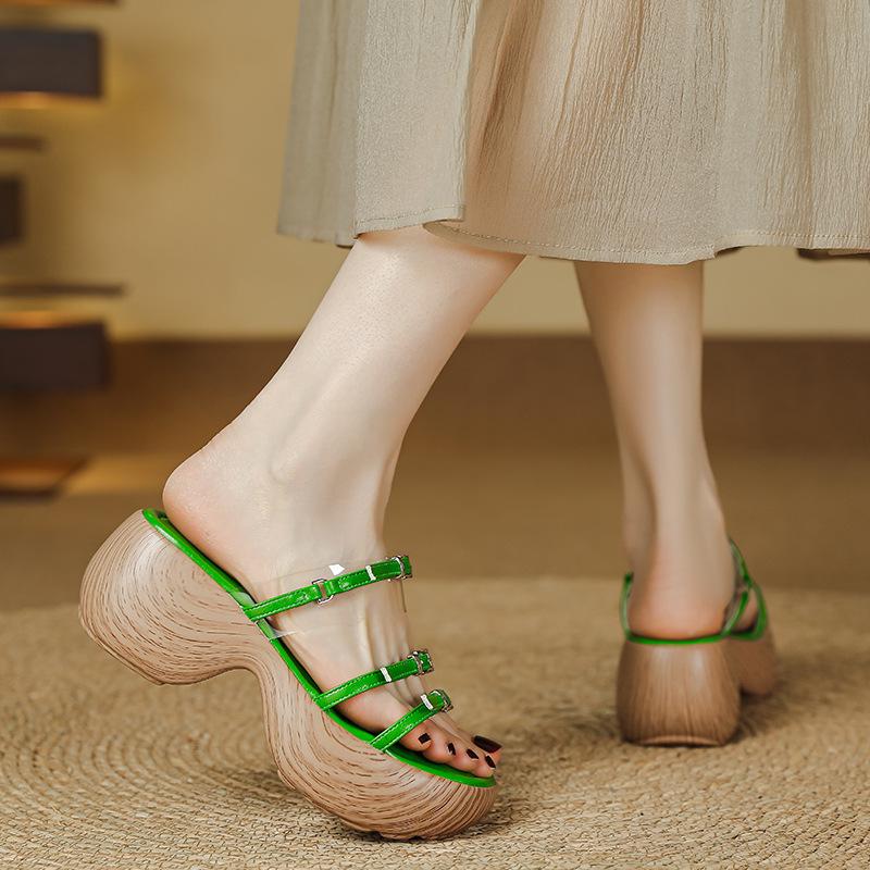 Thick-soled Heightening Roman Sandals for Women's New Summer Outer Wear, One-word with Wedged Muffin, One-pedal Retro Cool Slippers