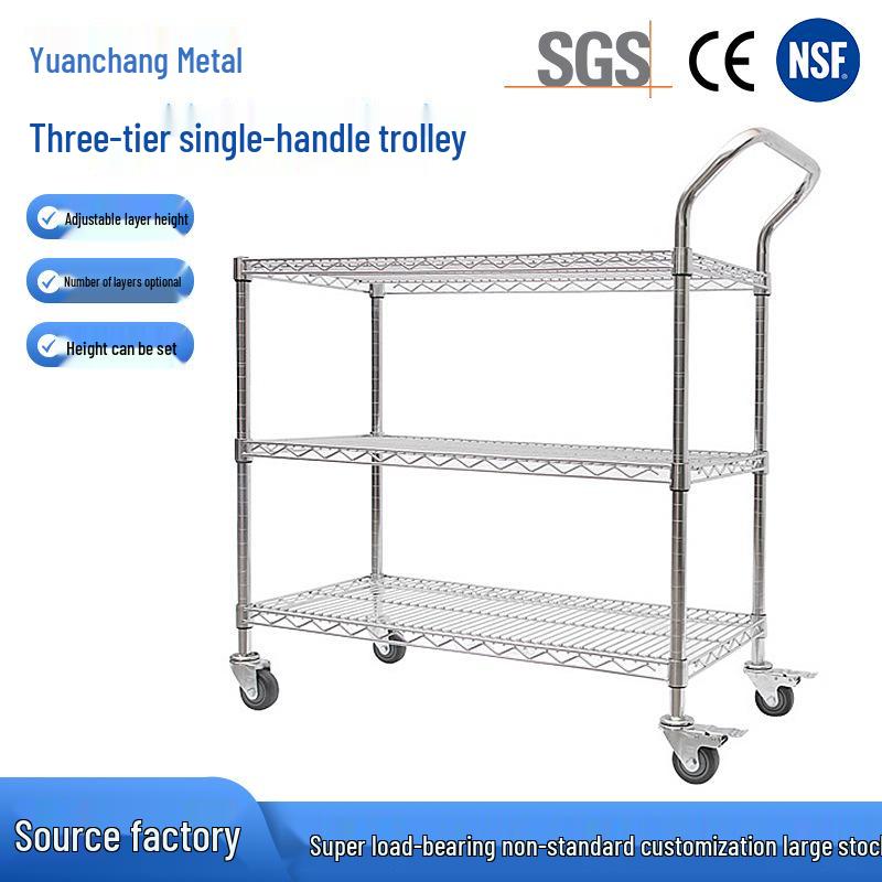 Stainless Steel Adjustable Three-Layer Flatbed Cart for Goods