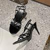 2025 Summer Internet Celebrities New One-word Buckle Temperament High Heels Women's Fine Heels Beautiful Nude Strap Sandals Versatile