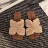 Retro Beige Square Head Fluffy Shoes for Women's Outer Wear 2025 Autumn New Plush Lazy Shoes Crossed with Cotton Slippers