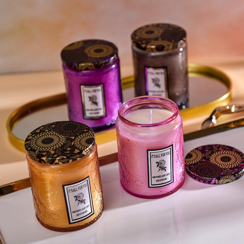 Embossed Glass Cup Aromatherapy Candle Gift Set - Smokeless & Creative Festival Souvenir