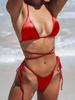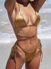 Elevate your swimwear collection with this chic and trendy triangle strappy bikini, designed for women who appreciate European and American styles. This sexy swimsuit features a solid pattern and is crafted from high-quality polyester, ensuring durability and comfort. With its stylish straps and flattering cut, it's perfect for sunbathing at the beach or lounging by the pool. Embrace elegance and confidence in this must-have swimwear piece.