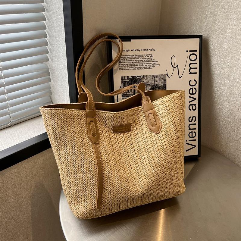 Students Carry Large-capacity Bags In Class Women's Simple Leisure Commuter Tote Bag Summer Woven Shoulder Bag
