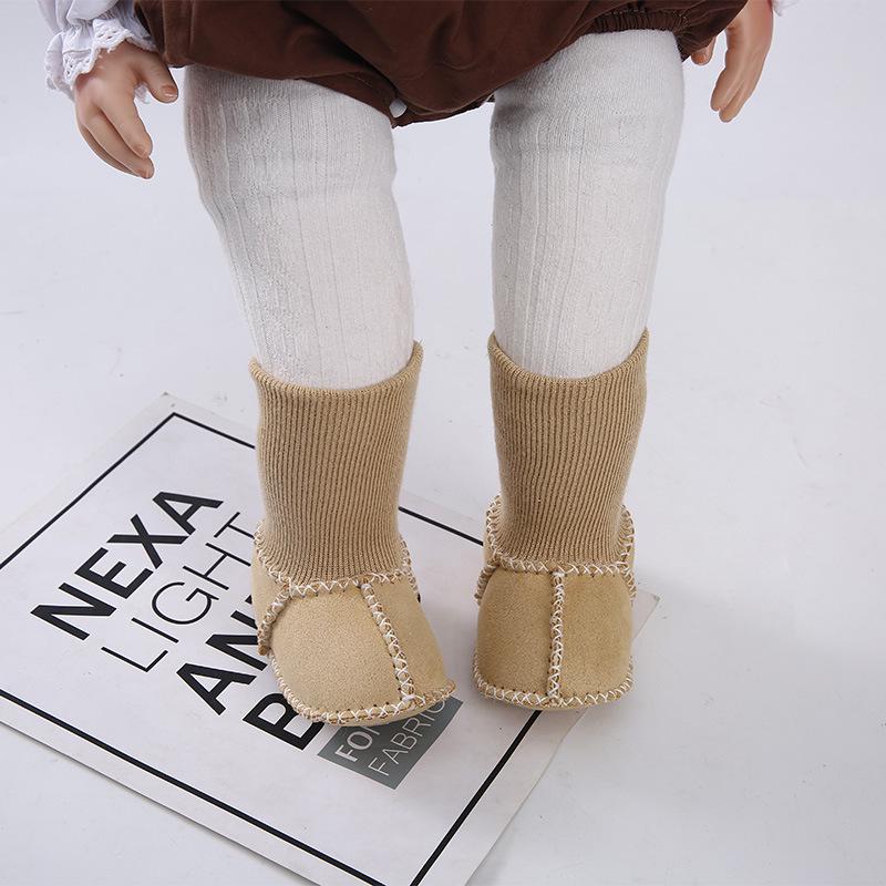 Lambskin Baby Shoes with Soft Sole and Fleece Lining - Thickened One-Piece Infant and Toddler Walking Socks
