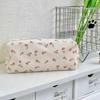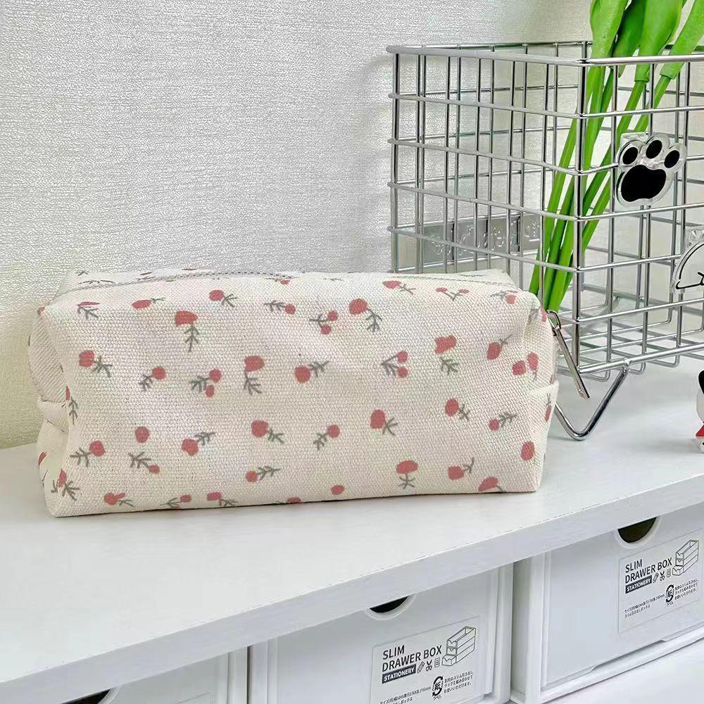 Charming Cream Floral Canvas Pencil Case: Fresh, Cute, Large-Capacity Stationery Bag