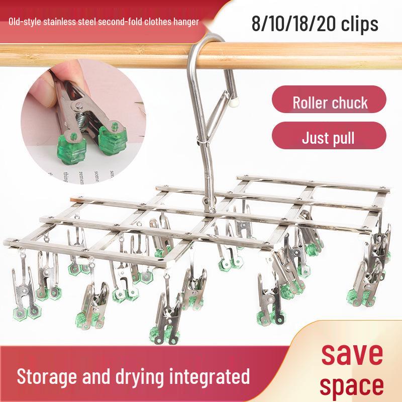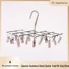 Stainless Steel Portable Folding Clothes Hanger with Multiple Clips for Socks & Drying