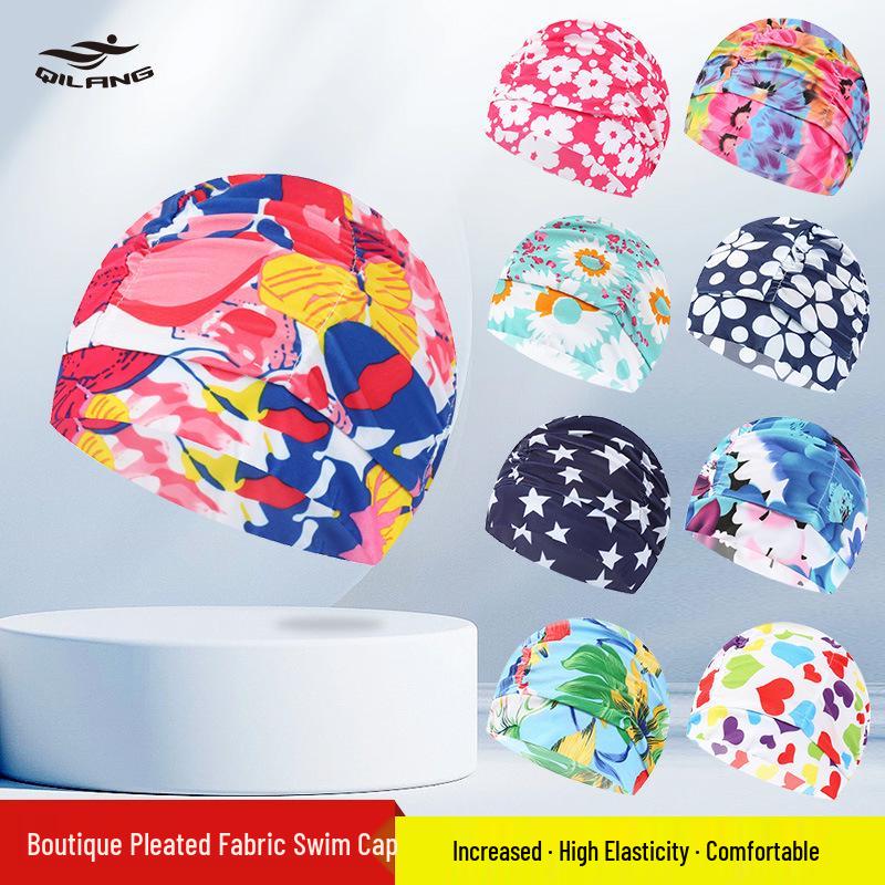 Adult Unisex Large Waterproof Swim Cap with Ear Protection - Fashionable Pleated Design, Comfortable and Non-Tightening.
