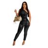 AL240 European & American Women's Metallic Sleeveless Sexy Summer Jumpsuit