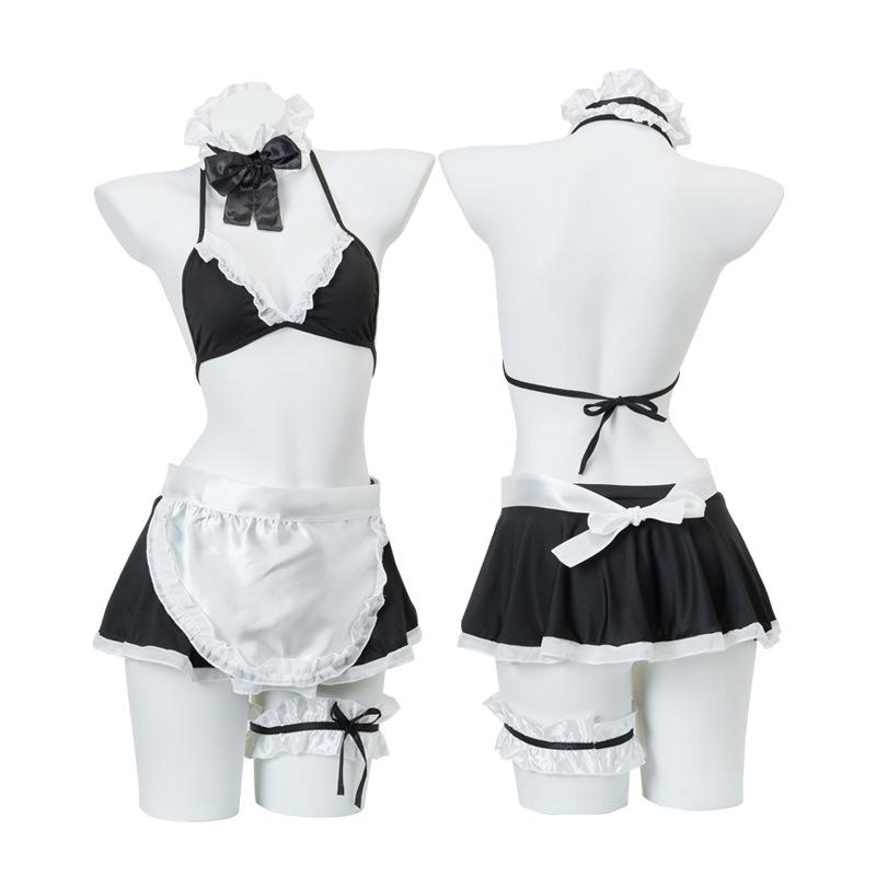 Night Listen Lingerie: Sexy See-Through Maid Role Play Set with Open Crotch, 3-Piece Women's Temptation Uniform