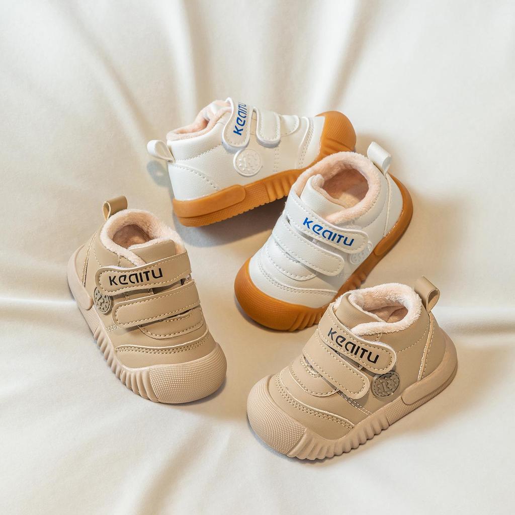 Keep your little one's feet cozy and secure this winter with these adorable baby walking shoes. Designed for both boys and girls, these shoes feature a warm cotton exterior and a luxurious velvet lining, ensuring maximum comfort for tiny toes. The soft, non-slip sole provides a secure grip on various surfaces, making it perfect for early walkers. With their charming design and practical features, these shoes are an essential addition to your baby's winter wardrobe.