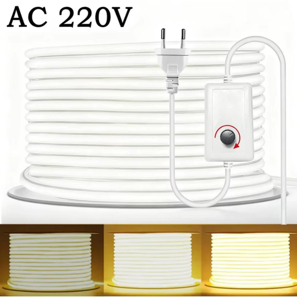 COB LED Strip AC 220V With Switch/Dimmable EU Plug IP65 Waterproof RA95 Lens FOB LED Tape 288LEDs/M For Home Bedroom Decoration