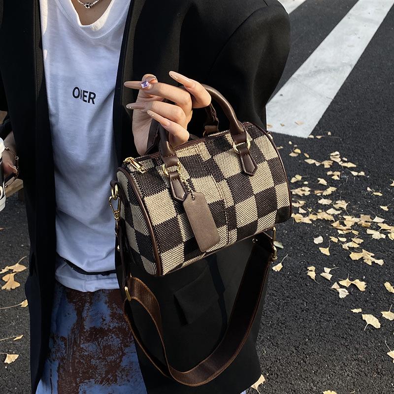 Plaid Canvas Niche Portable Pillow Bag Women's New Versatile Fashion Shoulder Messenger Bag