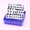 Boxed Set of 24 Mini Stud Earrings: Gold, Silver & Black with Plastic Posts