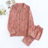 New 2024 Women's Floral Cotton Pajamas Set - Long-Sleeve, Turn-Down Collar, Double-Layer Gauze for Spring and Autumn.