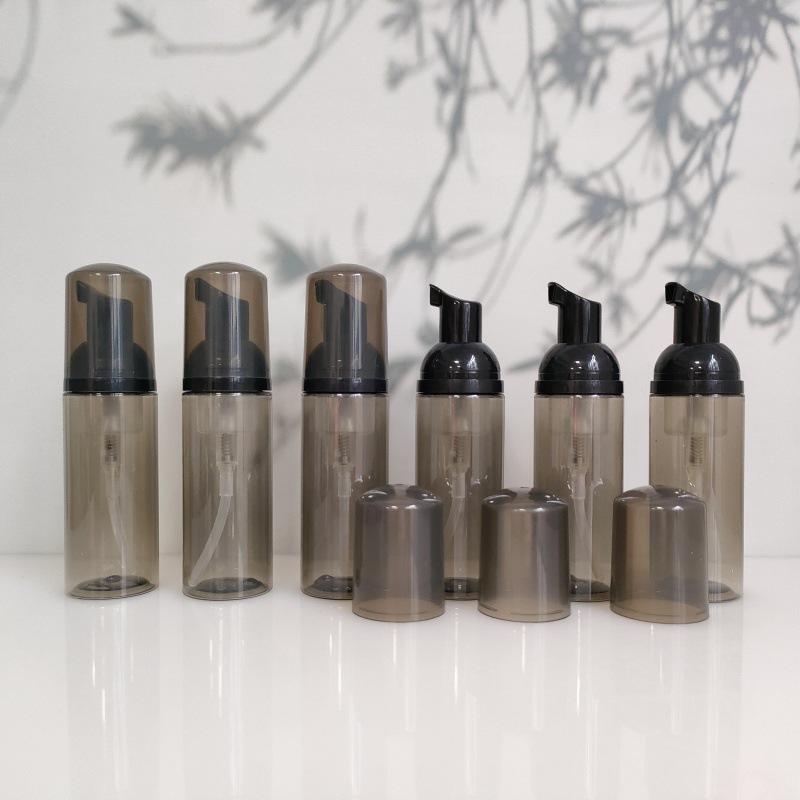 Available 60ml Transparent Black Foam Mousse Bottle for Face Wash and Travel-friendly Cosmetic Packaging.