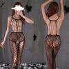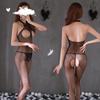 Bright Lingerie Women's Passion Set: Sexy Transparent Fishnet Open Crotch Three-Piece.