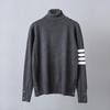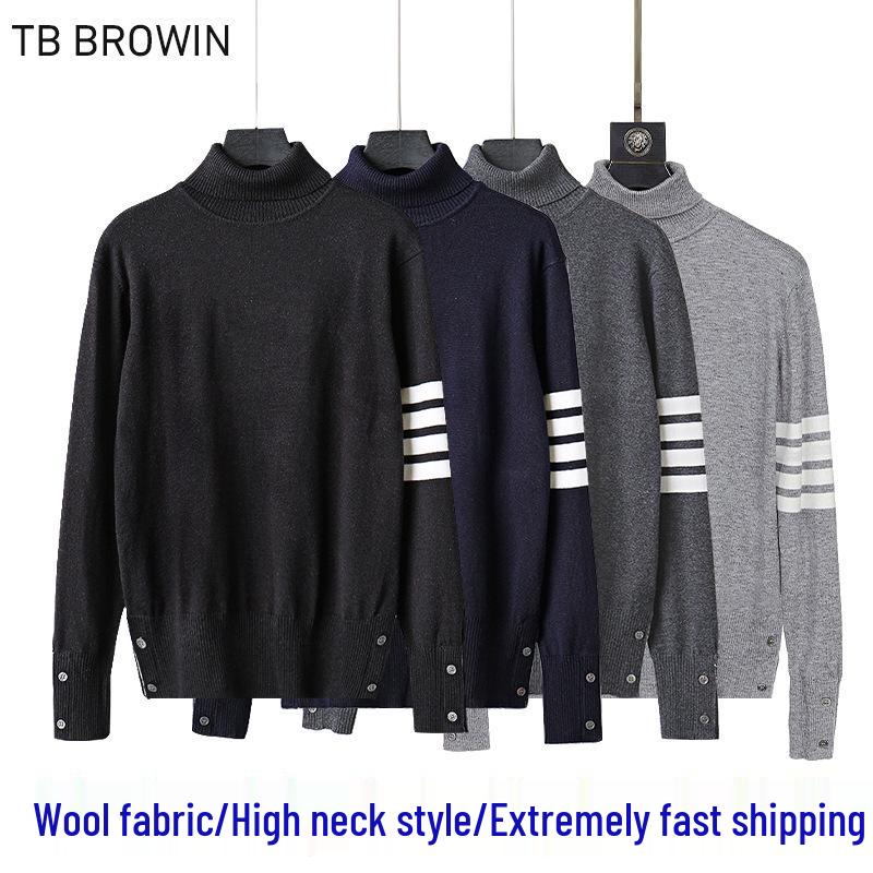 Experience ultimate comfort and timeless style with this unisex high-neck sweater. Crafted from quality wool, it features a classic British design with distinctive four-bar detailing on the sleeve. With its long sleeves and standard thickness, this sweater is perfect for adding a touch of elegance to any outfit, keeping you warm and fashionable whatever the occasion.
