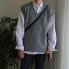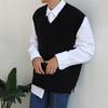 Korean Style V-Neck Sleeveless Cardigan - Men's Knitted Sweater Vest for Spring & Autumn In Solid Colors