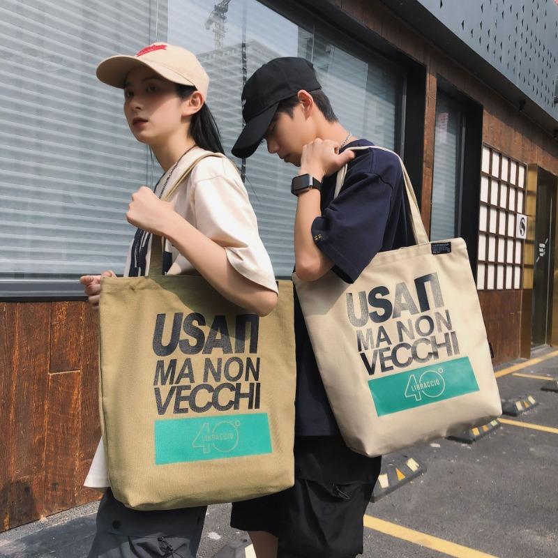 New Canvas Bag Large Capacity Women's Alphabet Printed Shoulder Bag Student Commuter Handbag