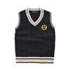 This stylish sweater vest, crafted from high-quality cotton, features a classic V-neck design. Its British-inspired embroidery showcases an elegant crown motif, adding a sophisticated touch to any outfit. With its sleeveless cut, this versatile vest is perfect for layering over shirts or wearing alone for a polished school or casual look.