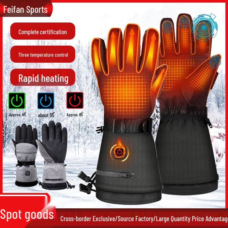 Winter Smart Heated Gloves: Three-Level Temperature Control, Waterproof, Cold-Proof, Rechargeable, Five-Finger Design for Outdoor Cycling.