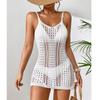 European and American Women's See-Through Spaghetti Strap Knit Beach Dress