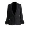 Women's 2025 Korean Style Shawl Collar Jacket with Ostrich Feather Spliced Design
