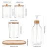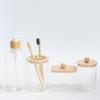 4-Piece Bathroom Set: Transparent Press-Down Soap Bottle, Toothbrush Holder, Bamboo Lid Cotton Swab Box, and Acrylic Cotton Ball Jar