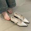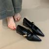 One Word with Small Leather Shoes, Women's Simple and Versatile Commuting Temperament, Single Shoes, Pointed Head, Shallow Mouth Mary Jane Shoes