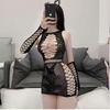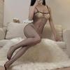 Drunk Cellar Sexy Fishnet Lingerie: European & American Style Hollow Out Bandeau with Removable Open Crotch Bodysuit Set.