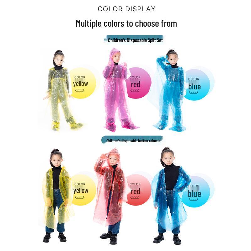 Portable Kids' Thickened One-Piece Transparent Rain Poncho for Hiking and Travel