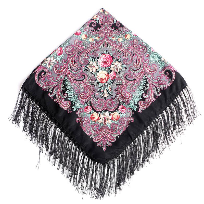 90*90cm Women Russian National Square Scarf Luxury Floral Print Russian Shawls Scarves Female Retro Fringed Foulard Wraps