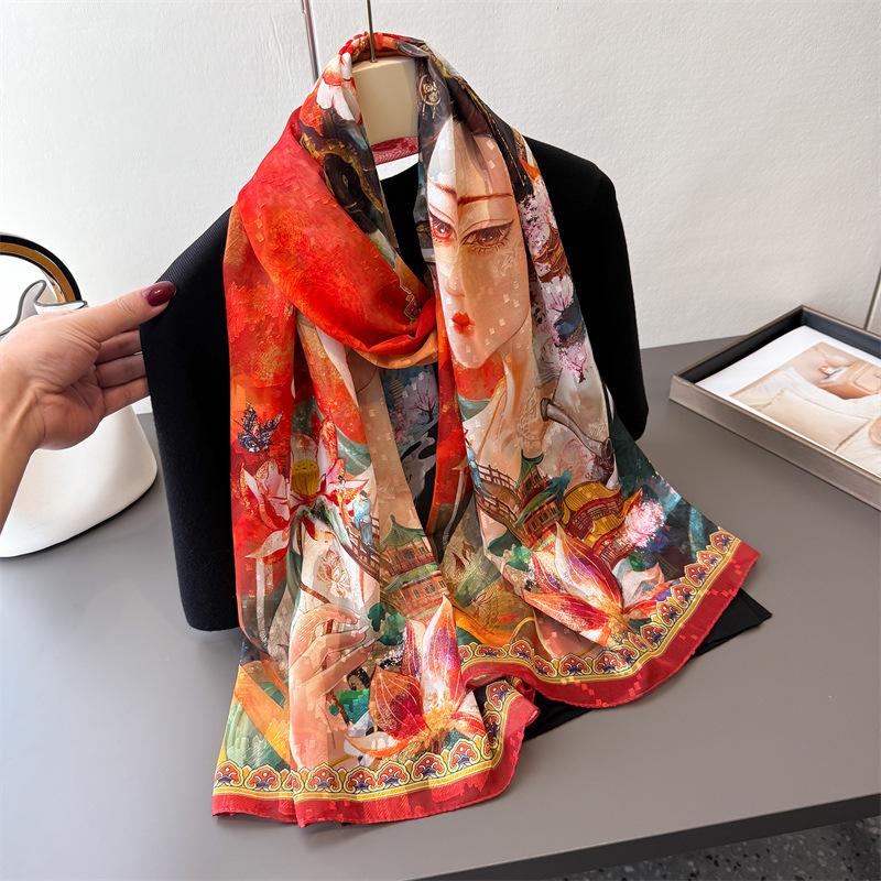 180*70cm Print Sunscreen Gauze Large Scarf Women Bandanna Popular Silk Shawl Scarves Spring Summer Autumn Hijab Wrap Beach Towel