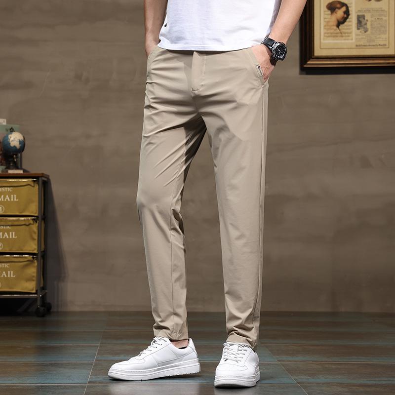 These Men's Summer Slim Fit Pants are crafted with a four-way stretch ice silk fabric for ultimate comfort and mobility. Made from a blend of 77.6% nylon and 22.4% spandex, they offer a lightweight and breathable feel, perfect for keeping cool in warm weather. The trendy casual straight-leg suit style seamlessly blends elegance with relaxed sophistication, making these pants an ideal choice for both casual outings and more formal occasions.