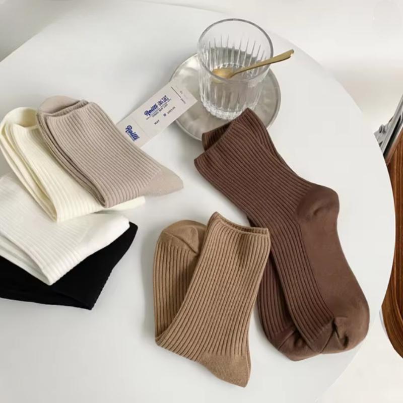 Autumn Winter Red Brown Color Series Women Loose Socks Rib Cotton Fashion Basic Daily Classic Sock Female