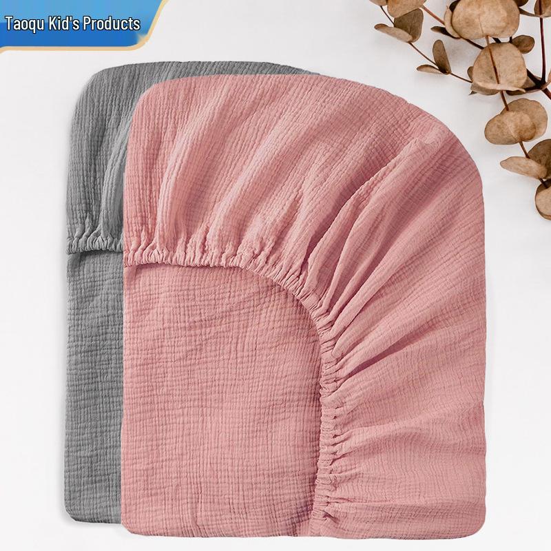 Baby Pure Cotton Double Layer Gauze Crinkle Fitted Sheet Bed Cover