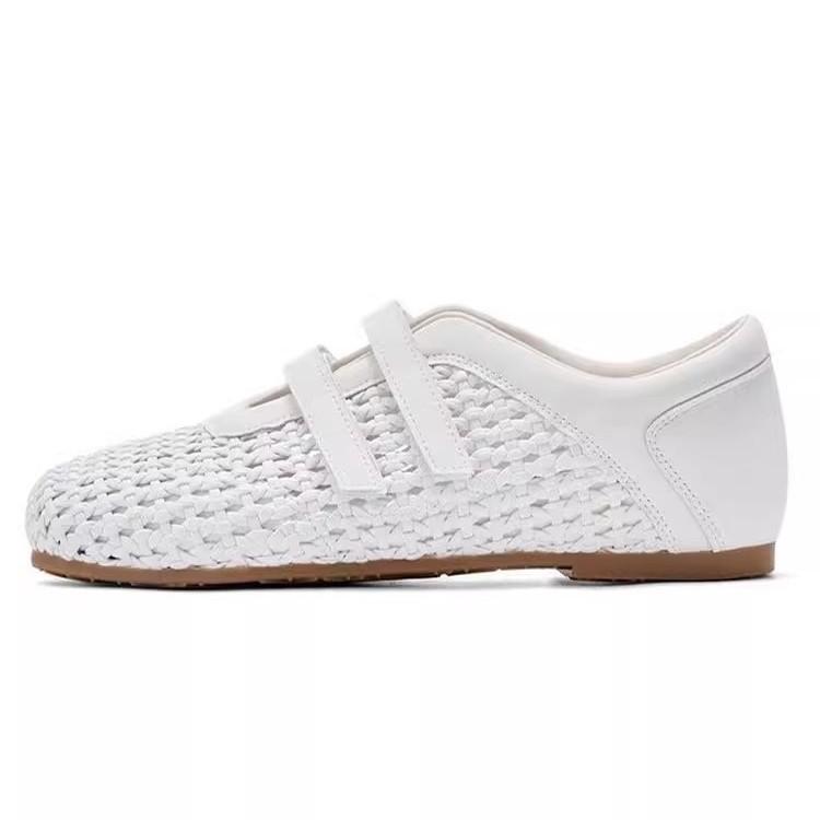 Woven Hollow Mary Jane Sandals Women's 2025 Summer New Mesh Breathable Velcro Shallow Mouth One Pedal Single Shoes