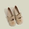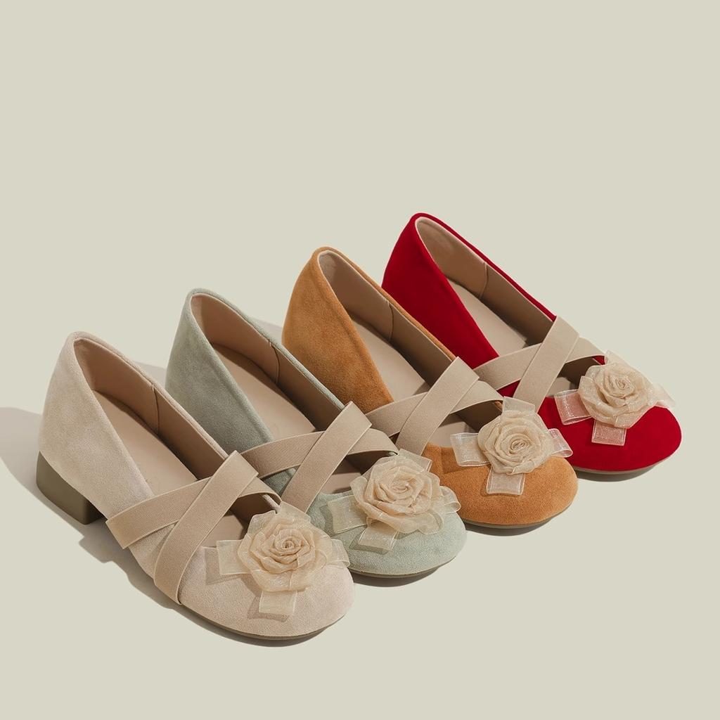 Leather Inner Height Increase Camellia Cross Belt Mary Jane Shoes Women's 2025 New Spring Ballet Shoes Thick Heel Single Shoes Women