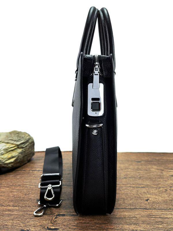 Men's High-End Genuine Leather Briefcase with Anti-Theft Fingerprint Lock - Single Shoulder Crossbody Business Handbag