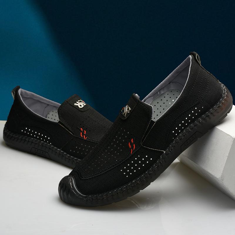 2025 Summer Hollow Canvas Men's Shoes Foreign Trade Old Beijing Cloth Shoes One Pedal Breathable Driving Shoes Breathable Dad Shoes