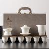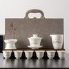 Light Luxury Suet Jade White Porcelain Cover Bowl Kung Fu Tea Set, Complete Set of Office Business Gifts, Gift Boxes, Boutique Products