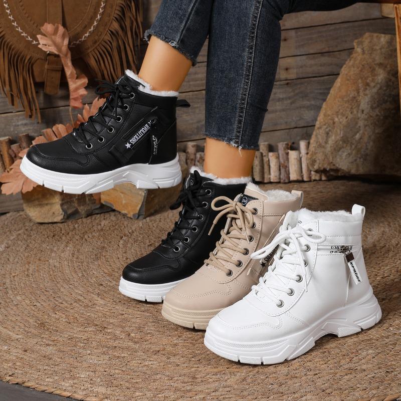 New Large-sized Martens Boots for Women, Versatile and Warm High-top Height-increasing Cotton Shoes