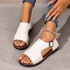 New Flat Beach Shoes, Open-toe Buttoned Large-sized Sandals for Women