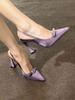 2025 Summer New Purple Satin Horseshoe Heel Bow Sandals Women's Pointed Rhinestone Buckle Sexy High Heels