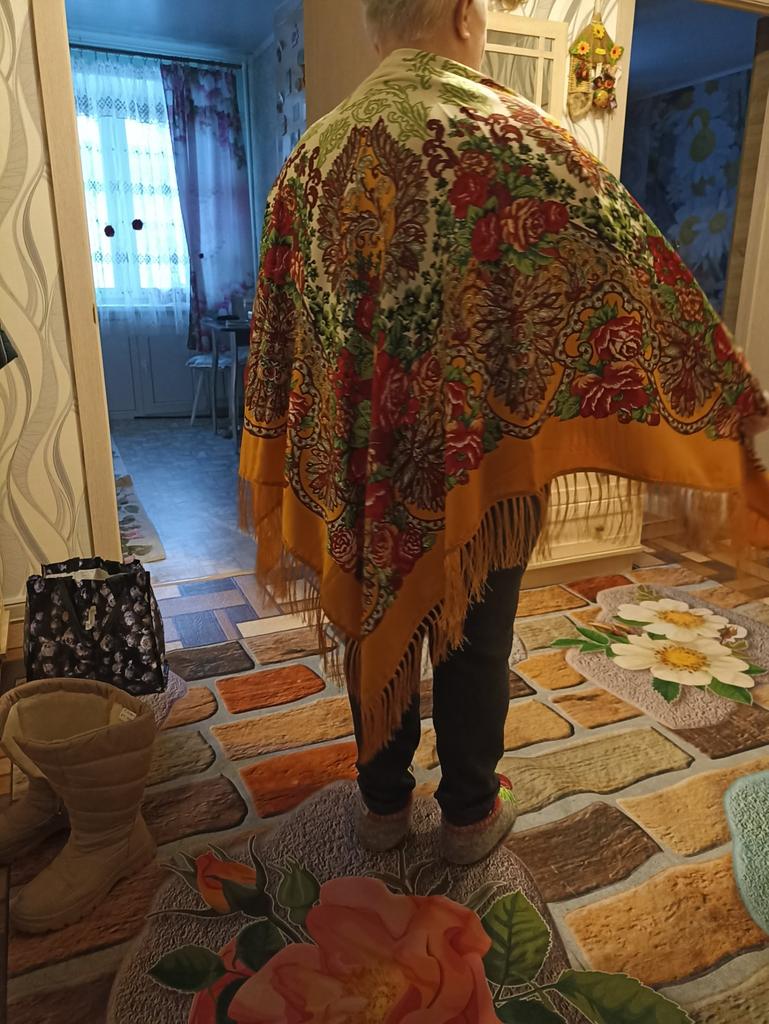 The scarf I was really looking forward to arrived. It was supposed to be large, 160x160 cm. Even with the fringes, it doesn't reach 160 cm.