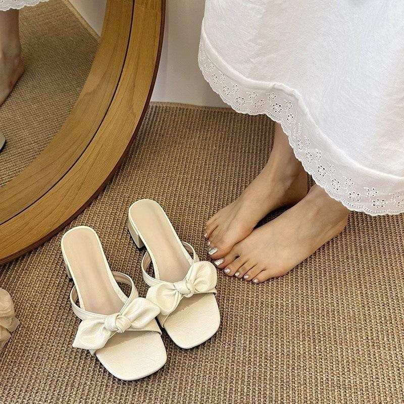 French Beautiful Thick Heel Cool Slippers Female 2025 New Summer Wear with Skirt Fairy Style Slippers High Heel Sandals