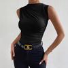 Experience contemporary elegance with this sleeveless semi-high neck ruched pullover vest. Crafted from a luxurious blend of milk silk and artificial silk material, this vest offers both comfort and style. The exquisite print decoration adds a touch of sophistication, making it a versatile piece for various occasions. Whether paired with your favorite jeans or a chic skirt, this vest provides a fashionable edge to any outfit.